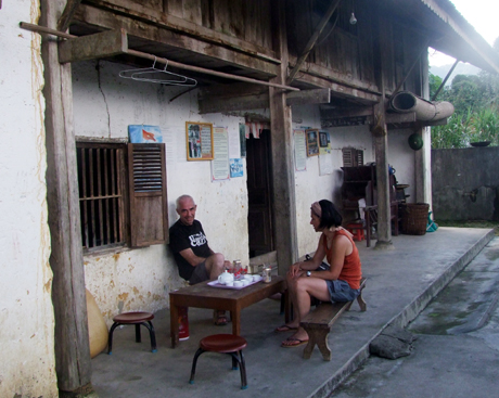 Nous avons quant à nous rendez-vous chez un certain Hoàng Van Nghi. Pour arriver jusque chez lui, nous devons traverser le hameau : l’occasion, pour nous, d’admirer toutes les maisons sur pilotis qui bordent la route. Une fois sur place, nous tombons en pleine effervescence domestique : Hoàng Van Nghi s’apprête à recevoir un groupe de touristes français. Pour l’instant, toute la famille est aux fourneaux. Pour qui connaît le hameau, la scène n’a rien de vraiment surprenant. Les touristes sont ici accueillis à bras ouverts. Ils peuvent compter sur l’hospitalité d’au moins de 10 familles qui ont décidé de se lancer dans le tourisme communautaire et de proposer des séjours chez l’habitant.