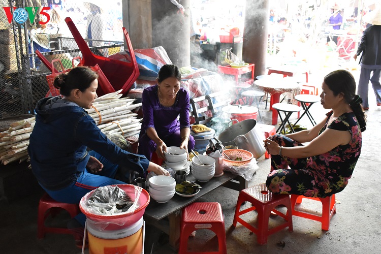 Alors naturellement, toutes ces activités, ça creuse… Eh bien qu’à cela ne tienne ! Comme dans tout marché campagnard digne de ce nom, la gastronomie est bien sûr à l’honneur et les visiteurs n’ont qu’à prendre place sur des tabourets en bambou tressé pour faire bombance. Le plus difficile, pour eux, étant de faire leur choix, tant il y a de choses diverses et variées… Patates douces de Thuy Thanh ou soupe de poisson de Thuy Duong ? Telle est la question…