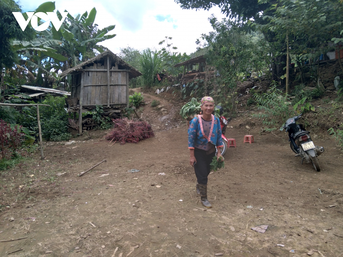 Dans sa hotte, une femme Mông porte ce qu’elle a à vendre et ramène ce qu’elle a pu acheter avec l’argent obtenu. Photo: VOV |