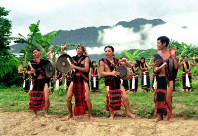 Si vous visitez un village Sedang au printemps ou à l’occasion d’une fête, vous entendrez de loin les sons graves et épiques des gongs, des sons chaleureux du Klong put, agrémentés des sons harmonieusement modulés du T’rung… A côté d’une jarre d’alcool au chalumeau, garçons et filles dansent et chantent en se tenant par la main, rêvant de bonheur et de prospérité.