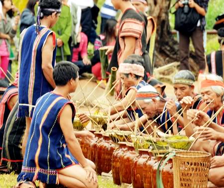 Dans la vie communautaire des K’ho, l’alcool de riz et les gongs sont indissociables. Les désaccords et le petits contentieux mis de côté, on sirote l’alcool et on danse aux sons des gongs et des tambours. Mais lors des cérémonies rituelles, il y a aussi des règles à suivre si vous voulez boire de l’alcool comme un K’ho. La personne qui verse de l’eau dans la jarre doit être une belle jeune femme habile. Habile parce qu’elle ne doit laisser échapper aucune goutte d’eau de la jarre, tradition oblige.