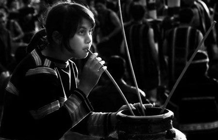 Depuis la nuit des temps, siroter l’alcool avec des chalumeaux fait partie intégrante de la vie des K’ho. K’Thi Son, membre de cette ethnie :
