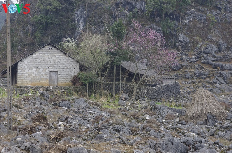 A côté de ces murailles en pierre, les Mông plantent des pêchers et des pruniers. Au printemps, ces arbres fleurissent. Le rouge des fleurs de pêcher, le blanc des fleurs de prunier se mêlent à merveille avec le gris des clôtures en bambou et le brun teinté de jaune des murs en terre battue. C’est dans ce paysage bucolique que les Mông vivent, paisiblement et en toute harmonie avec la nature, de génération en génération.