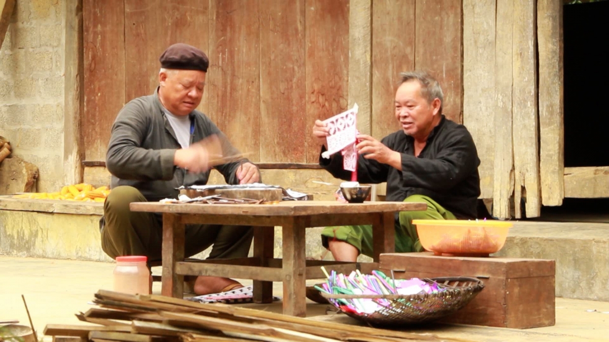 Faire venir des artisans pour confectionner des tableaux et des objets votifs est une obligation pour tous les Nùng Din qui se respectent lorsqu’ils perdent quelqu’un de leur famille. Le papier servant à décorer les tableaux ou les objets est perforé ou poinçonné à l’aide de ciseaux, de couteaux ou de lames de bambou. Les couleurs les plus récurrentes sont le violet, le rouge, le vert, le jaune, le noir et le blanc, nous fait savoir Nùng Chan Phin, ancien directeur adjoint du service de la Culture, des Sports et du Tourisme de la province de Lào Cai.