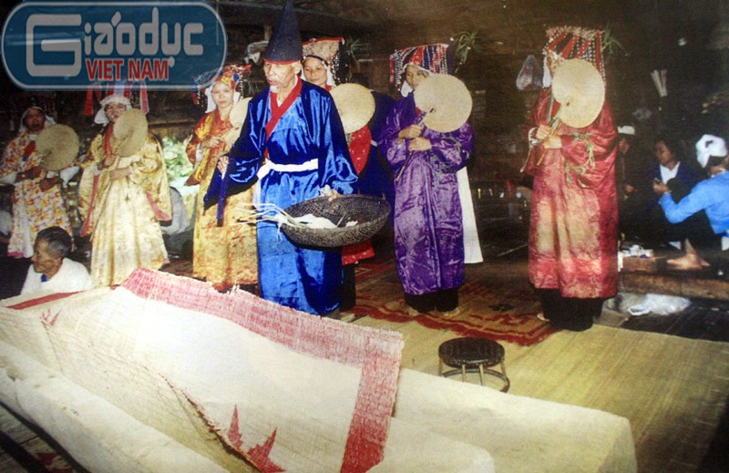 Chez les Muong, le thày mo dirige les cérémonies chamaniques, les « cérémonies Mo », en alternant invocations et oraisons.