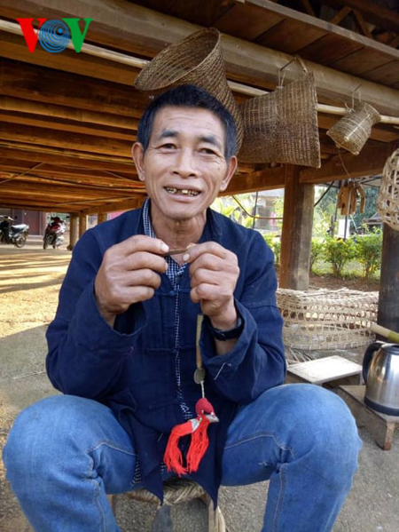 La guimbarde des Kho Mu est composée d’une armature de bambou séché et d’une languette en cuivre. On la met à la bouche, le doigt actionnant légèrement la languette en cuivre, laquelle donne un son grave et résonnant qui forme avec le claquement du bambou une jolie mélopée vibrante. Les Kho Mu n’utilisent pas cet instrument à des fins spirituelles. Les hommes en jouent à l’occasion des fêtes, ou lorsqu’ils veulent déclarer leur amour. Le soir tombant, l’amoureux se rend ainsi chez l’élue de son cœur pour lui jouer un morceau de guimbarde. Sa musique est comme une murmure que seul un cœur amoureux peut entendre, nous dit Lo Van An, un membre de cette ethnie.