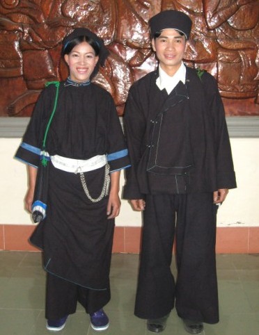 Les hommes revêtent des pantalons fluides et légèrement bouffants qui leur arrivent jusqu’aux chevilles. Pour ce qui est du haut, ils portent des chemises courtes à quatre pans, assorties de deux ou quatre pochettes. Ces chemises à col rond, garnies de sept boutons, bien serrées au niveau du corps, disposent de manches assez longues et larges, permettant à ces messieurs de se mouvoir en toute aisance. Quant aux femmes, elles disposent de chemises à quatre ou cinq pans, les premières étant fendues sur la poitrine et bordées de larges ourlets, les secondes couvrant jusqu’à la hanche et comportant des motifs brodés autour du col. En bas, elles portent des jupes de forme conique constituées de 12 pièces de différentes couleurs, symbolisant les 12 mois de l’année.