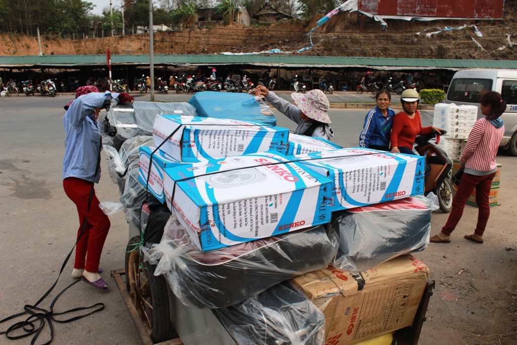 Ho Thi Ta Doa vend des denrées alimentaires au Laos depuis 5 ans. Chaque jour, elle prépare les commandes des clients et transporte les produits vietnamiens vers le Laos. Il s’agit principalement de fruits, de la viande et du riz.