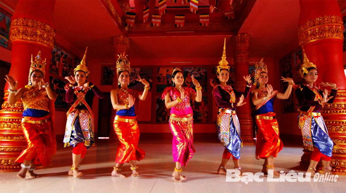 "C’est dans leurs pagodes theravada que les Khmers ont reproduit leurs danses, qui - ne l’oublions pas - sont avant tout un moyen d’entrer en communication avec les Dieux. Les nombreuses représentations de danseuses Apsaras, figures mythiques mi-humaines, mi-divines, attestent de l’importance de la danse dans la culture khmère."