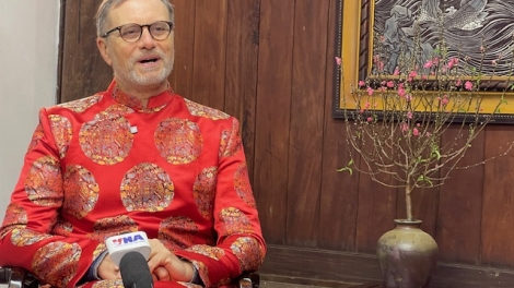(VOVWORLD) - À l’aube du printemps, tandis que les rues de Hanoï se parent des couleurs du Têt, le Temple de la Littérature s’anime d’une atmosphère à la fois solennelle et festive. C’est dans ce haut lieu chargé d’histoire que l’ambassadeur de France au Vietnam, Olivier Brochet, s’est rendu à l’approche de son troisième Nouvel An lunaire dans notre pays. Dans ce cadre hautement symbolique, il a eu ensuite un échange convivial avec des journalistes, revenant sur une année particulièrement riche et dynamique des relations franco-vietnamiennes.