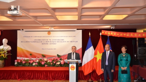 (VOVWORLD) - Le 14 septembre, l’ambassade du Vietnam en France a organisé une cérémonie pour célébrer la fête nationale, en présence de nombreux invités, parmi lesquels des représentants du corps diplomatique, de différentes organisations internationales et des Vietnamiens résidant en France.