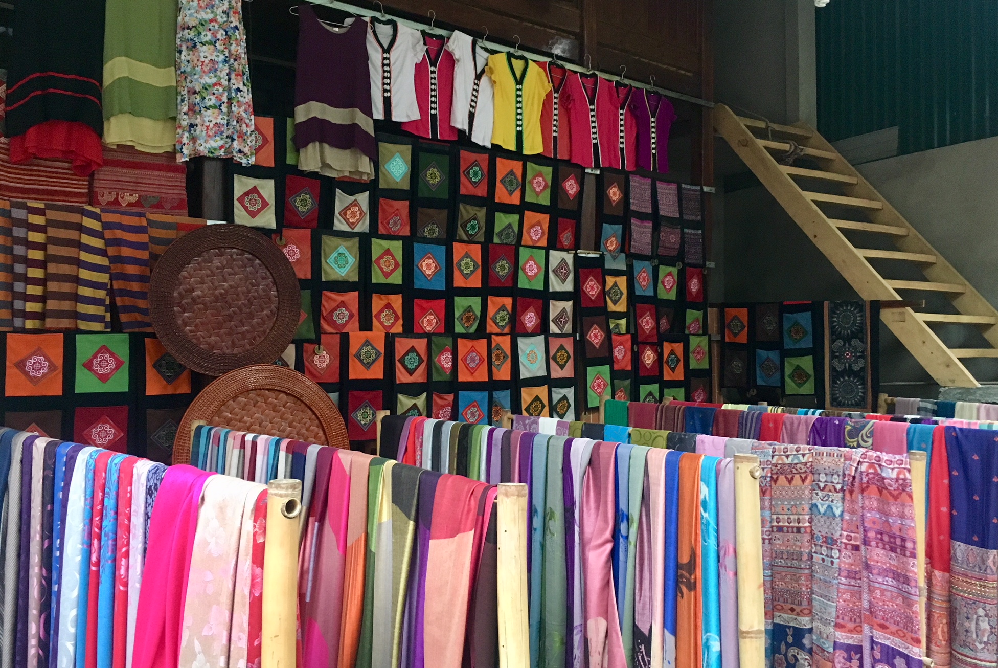 Alors, bien sûr, quand vient l’heure de partir et de s’arracher à ces lieux enchanteurs, on a envie d’en rapporter quelques petits souvenirs. Eh bien qu’à cela ne tienne! Les Thaïs tiennent boutique sous les planchers de leurs maisons sur pilotis, et on y trouve de tout : des brocatelles, des sacs, des écharpes, des couvertures, des outils agricoles, et même des arbalètes…