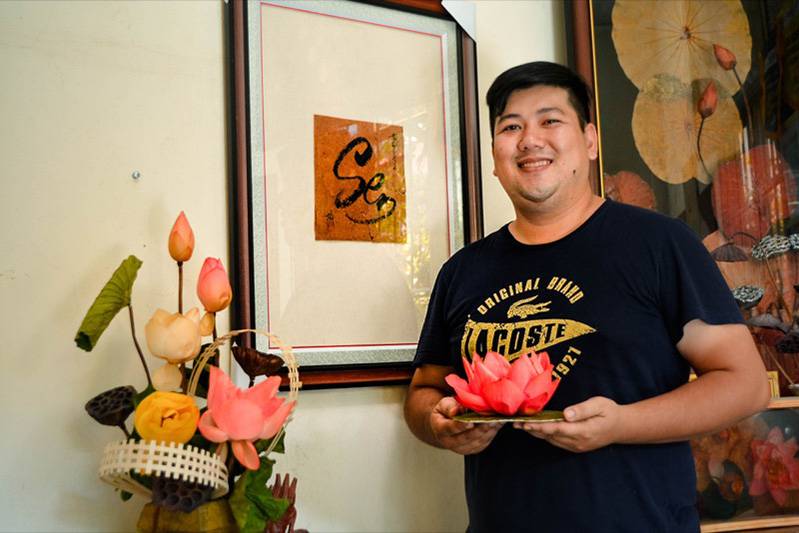 Après avoir étudié en France, Ngô Chi Công est rentré à Dông Thap et a créé Khoi Minh Thành Công, une société spécialisée dans l’artisanat floral. Chimiste autant que botaniste, il a réussi à créer une variété de lotus inédite: le lotus stabilisé.