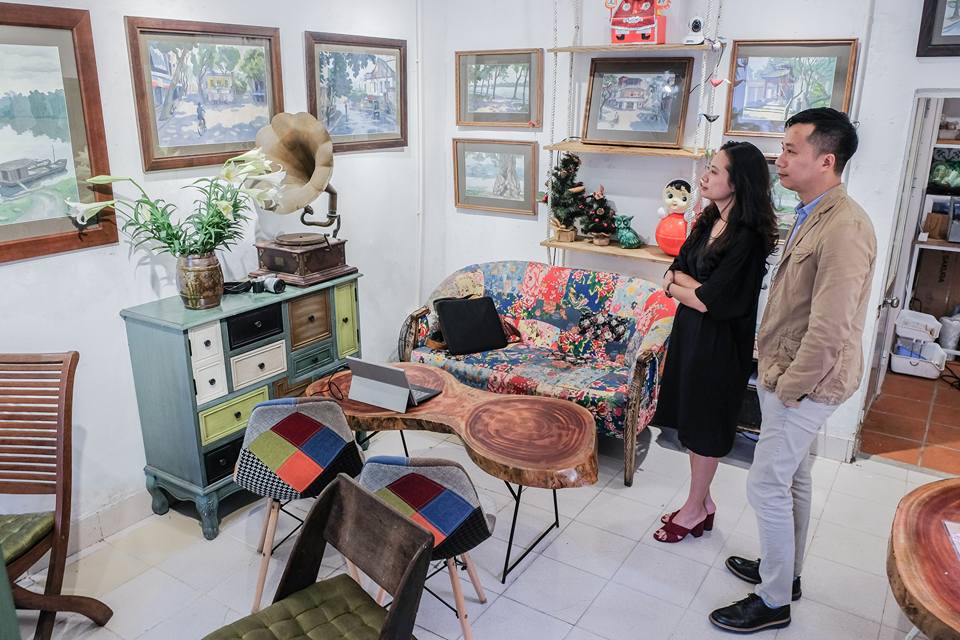 Mais ce n’est pas un hasard non plus si les artistes raffolent de ce genre d’endroit. Nguyên Truong Quy est un jeune peintre. Il a choisi «Ui Cha Tra» pour y exposer ses œuvres.