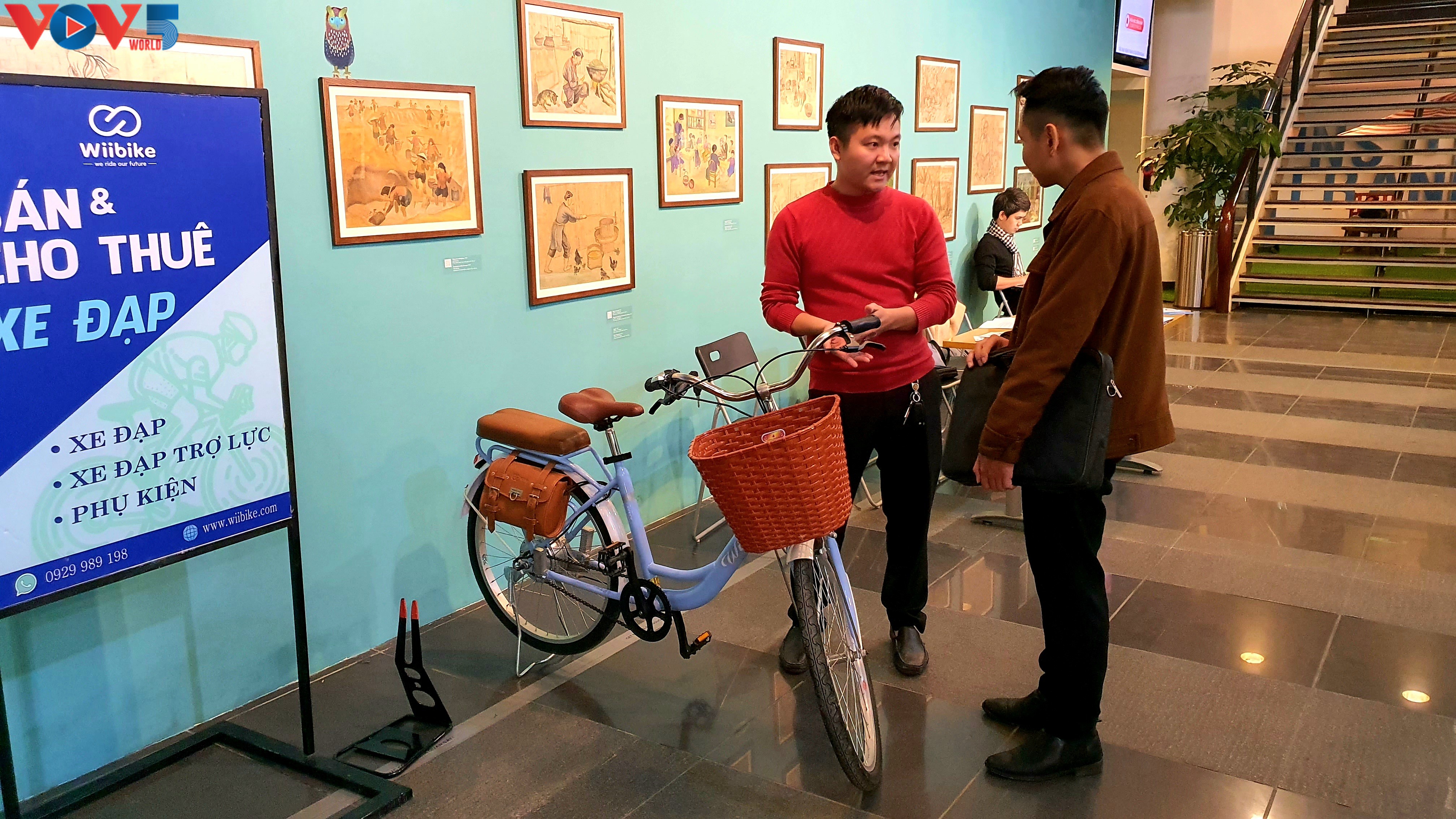 Nguyên Thê Cuong (chemise rouge), chargé d’affaires de Wiibike. Photo: Duc Quy/VOV5