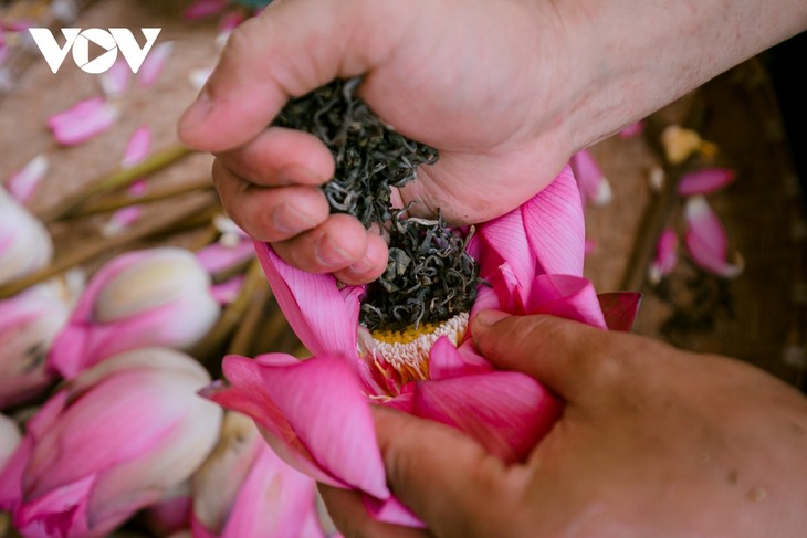 Il y a deux façons de parfumer le thé, une rapide et une longue. La façon rapide consiste à mettre directement le thé à l’intérieur d’une fleur de lotus. L’artisan emballe la fleur avec une feuille et continue de la planter dans l’eau pendant quelques heures. Par la suite, il coupe la fleur, la met dans un sac sous vide et la conserve dans le congélateur. Ce type de thé se vend 80.000 dôngs (3 euros) la fleur, soit l’équivalent du contenu d’une théière.