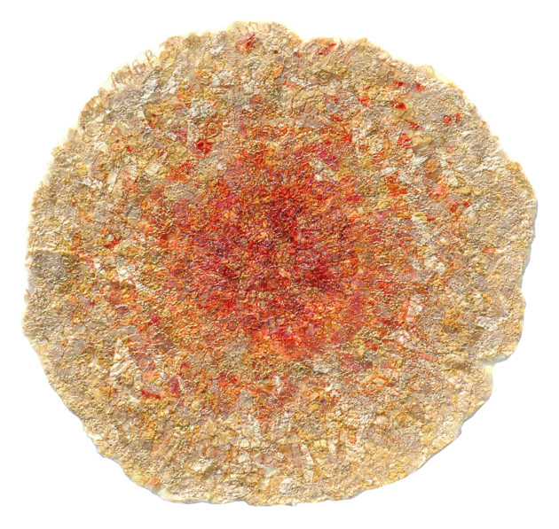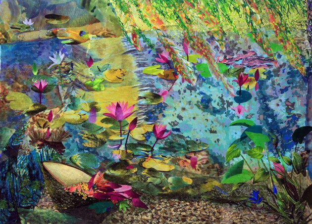 Catherine Juillerat exprime la vie et la culture des continents qu'elle traverse au travers des broderies exceptionnelles. Ça peut être l’image d’une fleur de nénuphar, des spectacles pittoresques comme la coulée de lave d’un volcan ou encore le désert de Sahara. L’oeuvre: Connection