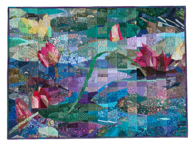 “Un après midi d’automne à Hanoi” a été réalisé avec des centaines de petits morceaux de tissus cousus les uns aux autres.