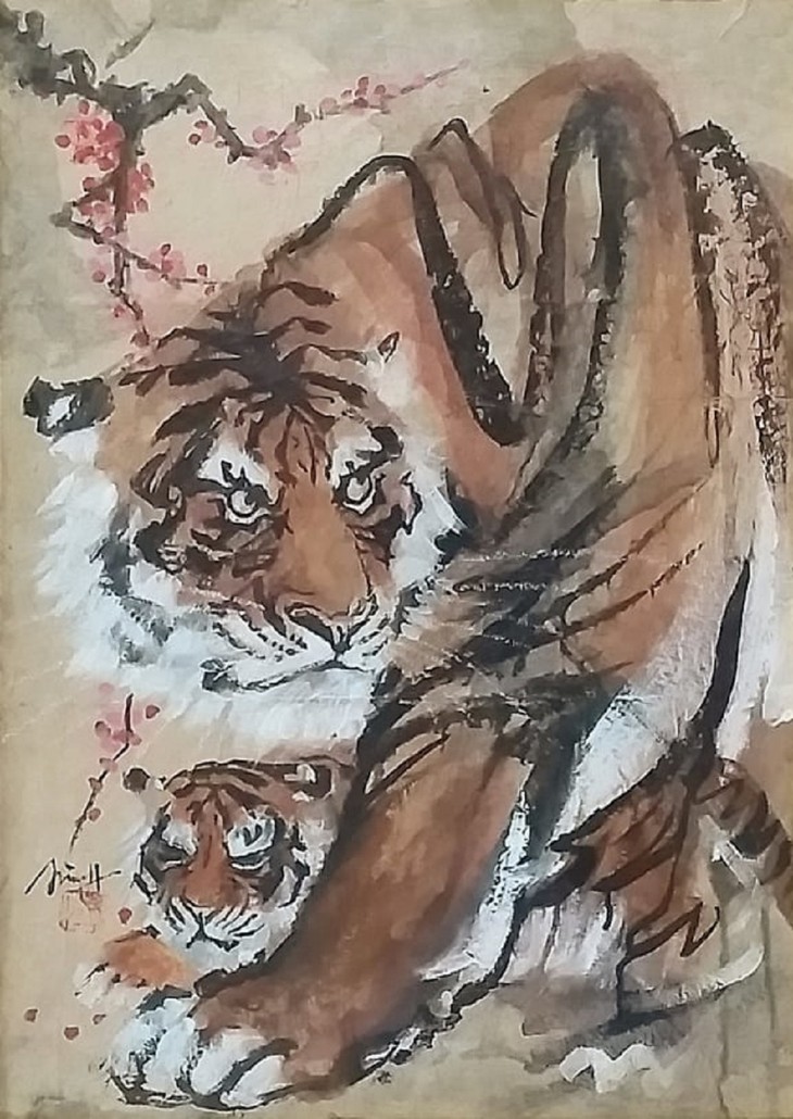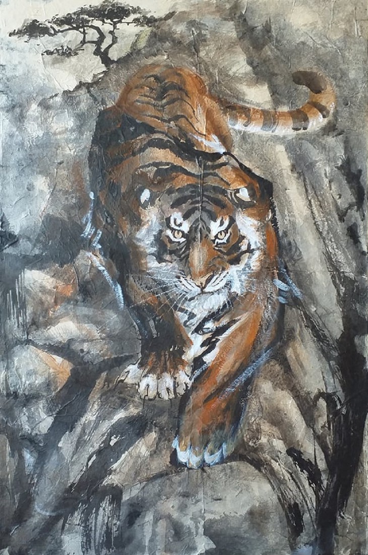 Cette année, le peintre de 48 ans a réalisé autant de peintures au sujet du tigre : une manière comme une autre de célébrer son nouvel âge. |