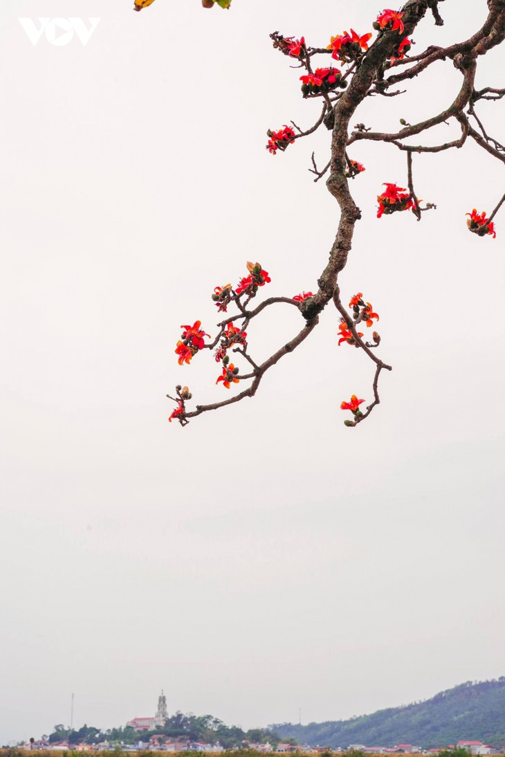 ![]() Ses fleurs ont des pétales épais. Un fromager rouge en pleine floraison est comme un torchon rouge à l’horizon. Photo: Thành Son |