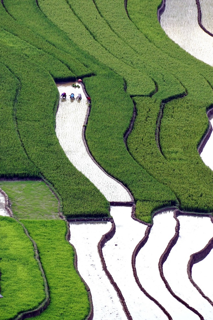 En ce moment de l’année, ces rizières sont inondées pour permettre ensuite le repiquage. Aux mois de mai et de juin, alors que les pluies estivales arrosent abondamment la région du Nord-Ouest, les ethnies minoritaires se mettent à préparer une nouvelle saison rizicole.