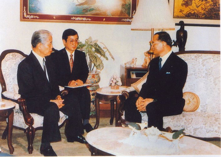 Dô Muoi reçoit la famille Ly Hoa Son, descendante du prince vietnamien Ly Long Tuong (Yi Yong-sang), réfugié en République de Corée. Au nom de sa famille, Ly Xuong Can, descendant de la 31e génération du roi Ly Thai Tô, fondateur de la dynastie Ly, a offert à Dô Muoi ce tableau sur lequel figurent la phrase “L’éloignement géographique n’empêche pas notre coeur de se tourner vers le Vietnam”, le 24 août 1995. |