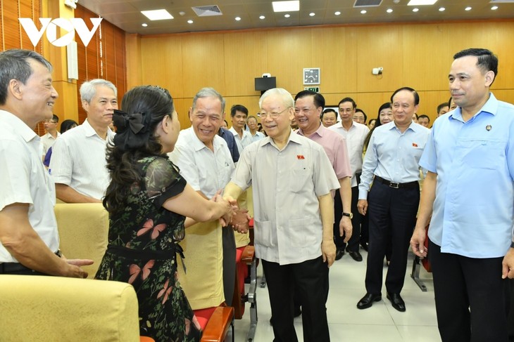 Le secrétaire général Nguyễn Phú Trọng discutant avec des électeurs hanoïens.