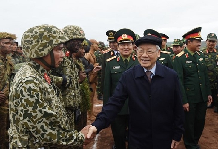 Nguyễn Phú Trọng rendant visite aux unités de la Marine à la base de Cam Ranh, dans la province de Khánh Hòa.