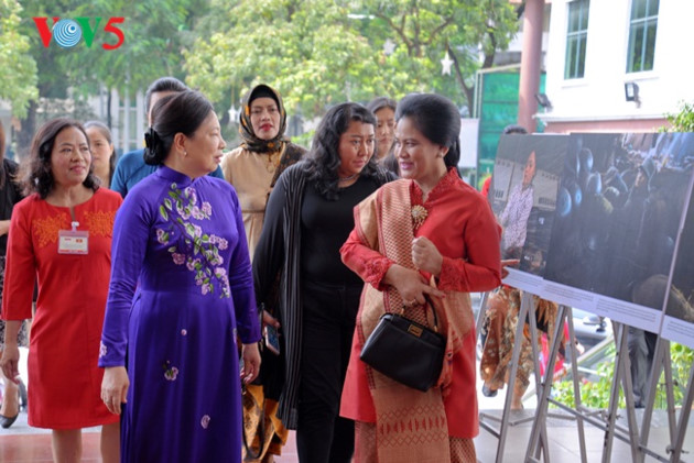L’épouse du président indonésien se montre impressionnée par les images et les objets ayant appartenu à des révolutionnaires vietnamiennes telles que Nguyên Thi Minh Khai, Hà Thi Quê… |