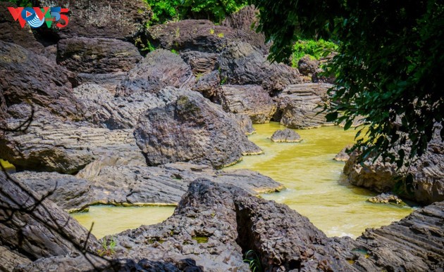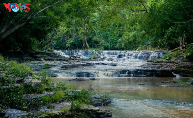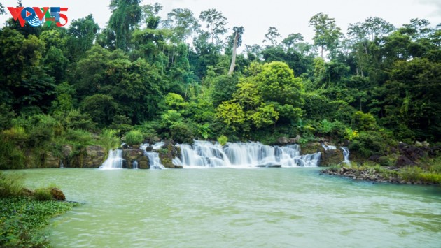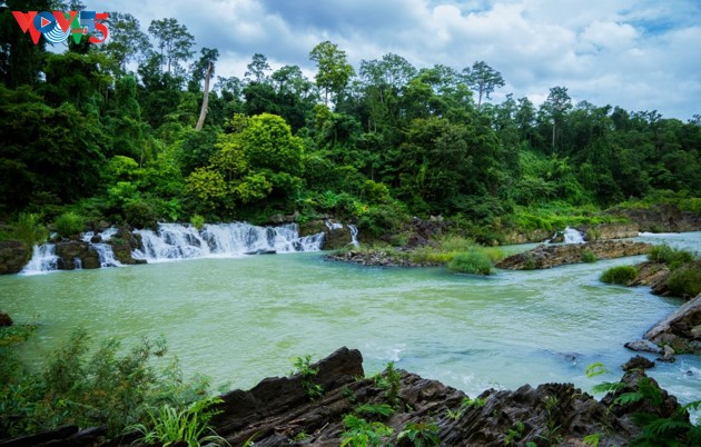 Située en aval du fleuve Serepok, la cascade Trinh Nu est nichée au sein de roches basaltiques et offre un paysage splendide.