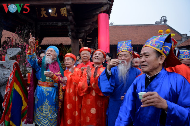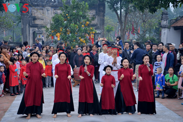 La partie festive comprend des représentations d’arts musicaux traditionnels. Dans la photo, un chant xoan de Phu Tho. |