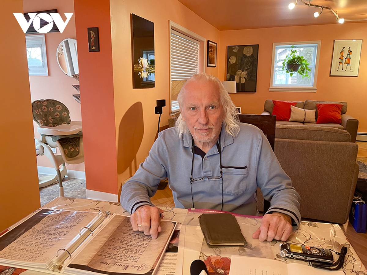 Peter Mathews vit dans une petite maison à Bergenfield, dans l’État américain du New Jersey. Lors de notre première rencontre, nous avons été impressionnés par cet homme simple, alerte et très hospitalier. Dans sa maison, nous avons vu le fameux carnet de notes posé sur la table basse. C’était bien celui que Peter Mathews avait trouvé au Vietnam alors qu’il était combattant de guerre. Cela fait plus d'un demi-siècle qu’il l’a conservé avec des articles et des informations connexes. En y feuilletant les pages, Peter Mathews se remémore: