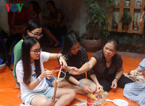 Nous sommes à l’Espace d’échanges culturels de Hanoi, au 32 rue Vong Thi. Aujourd’hui, il y règne une agitation peu commune. Il y a comme une atmosphère de cour de recréation, due sans doute aux nombreux enfants qui sont venus là, accompagnés de leurs parents, pour apprendre à fabriquer des jouets traditionnels. C’est le groupe My Hanoi qui a eu l’heureuse idée d’organiser cette séance exceptionnelle, forcément bienvenue à la veille de la fête de la mi-automne. « L’idée, c’est de proposer toute une série de manifestations en lien avec la fête de la mi-automne et d’en profiter pour remettre à l’honneur les jouets traditionnels, nous explique Nguyen Thuy Hang, du groupe My Hanoi. Pour tous ces enfants qui passent leur temps à jouer sur des jeux vidéos, c’est plutôt une bonne chose, je pense!... »