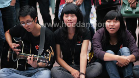 (VOVworld)- Sans scène, ni lumière, ni amplificateur, ni sièges pour les spectateurs, c’est au pied du monument du roi Ly Thai To, en face du lac de l’Epée restituée, à Hanoï, que se produit le groupe «Chanson d’aventure urbaine». Entourés d’une foule enthousiaste, ces jeunes musiciens constituent un orchestre des plus originaux: certains jouent de la guitare, d’autres du cajon, d’autres encore des maracas… s’y ajoutent évidemment des chanteurs.