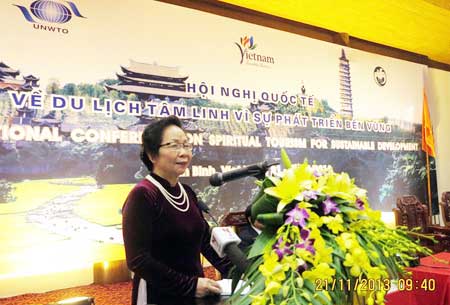 ![]() La vice-présidente vietnamienne Nguyen Thi Doan a exprimé lors de la cérémonie d'ouverture de la conférence internationale sur le tourisme spirituel pour le développement durable. Photo : internet