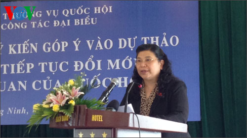 Selon Pham Minh Chinh, secrétaire du comité du parti pour Quang Ninh, les délégations parlementaires doivent être plus proches de leur électorat. Quant à la vice-présidente de l’Assemblée Nationale Tong Thi Phong, elle a estimé: « Nous devons augmenter graduellement le nombre de députés permanents tout en garantissant leur représentativité, leur professionnalisme et donc leur qualité. Les députés élus au Conseil des ethnies et aux commissions parlementaires doivent avoir une forte personnalité et des qualifications professionnelles élevées pour bien maîtriser les domaines concernés. Il importe aussi de rénover les procédures, d’améliorer la qualité du travail législatif et de supervision des activités et des décisions importantes pour le pays ».