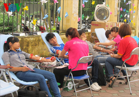 (VOVworld) - L’association des jeunes de Hanoi pour la mobilisation au don de sang, en collaboration avec l’institut d’hématologie et de transfusion sanguine, a organisé ce samedi la 5ème édition de la fête intitulée « coeur volontaire », en réponse à la journée internationale des volontaires. Nguyen Thi Linh, étudiante à la faculté de médecine de Hanoï, indique: « C’est la première fois que je donne mon sang. Je sais que les hôpitaux et de nombreux patients en ont besoin, surtout à l’occasion du Tet qui approche à grands pas. Je veux apporter ma part à cette activité humanitaire. »