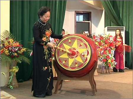 ![]() Le vice-président Nguyen Thi Doan bat le tambour pour commencer la nouvelle année scolaire 2013-2014