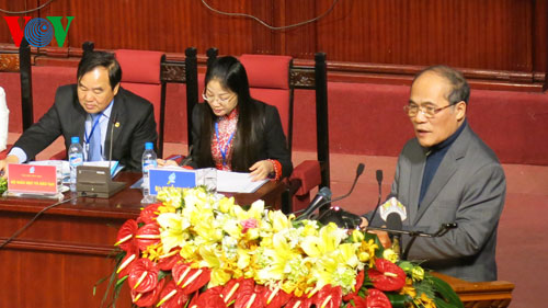 ![]() Le président de l’Assemblée Nationale Nguyên Sinh Hùng prenant la parole.