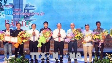 (VOVWORLD) -Vendredi soir, en présence du Premier ministre Nguyên Xuân Phuc, l’Union de la jeunesse communiste Hô Chi Minh a décerné les prix de son concours de création de chansons intitulé « Les fleurs immortelles ». La cérémonie s’est déroulée dans la province centrale de Hà Tinh, en l’honneur du 50e anniversaire de la victoire de Dông Lôc.
