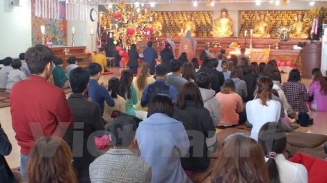 (VOVworld) - De nombreux bouddhistes vietnamiens vivant en République de Corée se sont rassemblées dimanche à la pagode Phuc Nguyen, à Séoul, priant pour la paix de la mer et des îles du Vietnam.