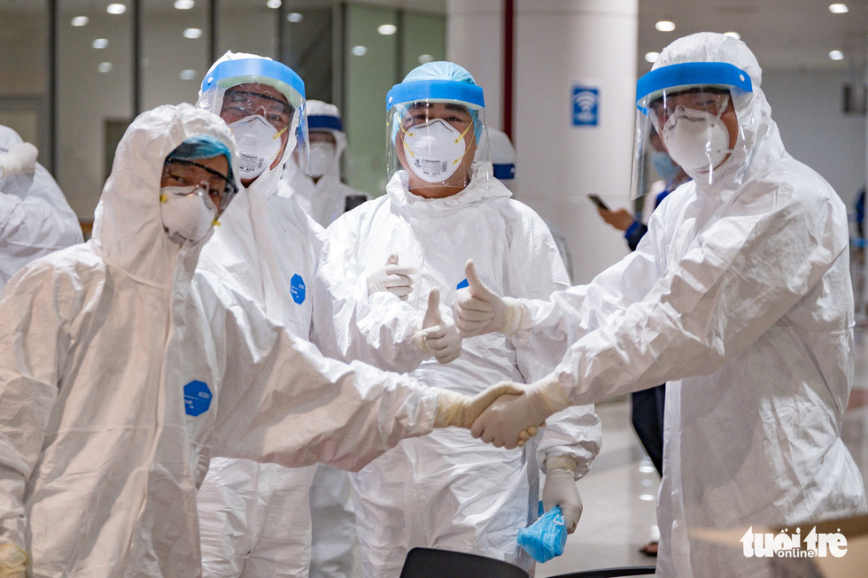 Les personnels médicaux à l’aéroport de Nôi Bai. Photo : tuoitre.vn |