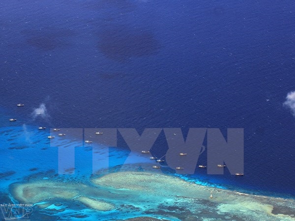 Kapal-kapal menangkap ikan Tiongkok berlabuh di pulau batu Chu Thap