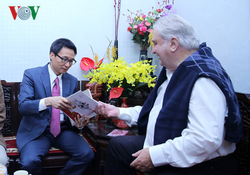 Pada hari yang sama, Deputi PM Vu Duc Dam mengunjungi dan menyampaikan ucapan Hari Raya Tet kepada Profesor Ilmu Fisika orang Perancis, Pierre Darriulat, seorang fisikawan papan atas di dunia. Dia juga adalah orang dengan sepenuh hati mengembangkan bidang ilmu penelitian fisika astronomi di Vietnam.