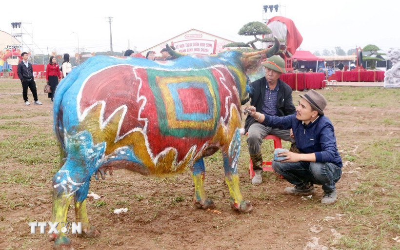 Sebanyak 15 pelukis yang merupakan anggota Asosiasi Sastra dan Seni Provinsi Ninh Binh berpartisipasi dalam lomba tersebut. Tema yang dimanifestasikan oleh para pelukis pada tubuh kerbau tahun ini didominasi oleh simbol shio kuda, perayaan Partai, perayaan musim semi, serta perayaan kampung halaman dan tanah air yang terus berkembang dan berinovasi.