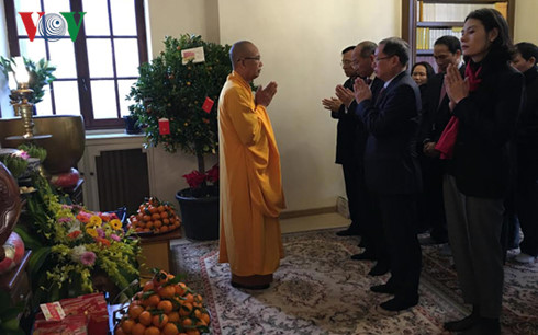 (VOVworld) – Berziarah ke pagoda pada awal tahun baru imlek telah menjadi ritual jiwa dari warga Vietnam di Perancis, mempertahankan nilai-nilai tradisional dan identitas bangsa. Pada hari pertama tahun baru imlek, para kader, staf Kedutaan Besar Vietnam dan para kader berbagai badan perwakilan Vietnam di Perancis telah membakar hio di depan altar Presiden Ho Chi Minh dalam Kedutaan Besar Vietnam di Perancis. Setelah itu, para kader Kedubes dan badan-badan perwakilan telah datang ke pagoda untuk mengadakan acara memohon ketenteraman pada tahun baru di dua pagoda Khuong Viet dan Truc Lam Thien Vien. Biksu Thich Phuoc Duong menyampaikan ucapan selamat tahun baru yang aman kepada umat penganut Buddha di luar negeri dan dalam negeri.