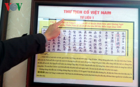 Semua bahan-bahan tercetak yang dipamerkan di sini merupakan sebagian dari bukti sejarah dan hukum yang dikumpulkan dari dalam dan luar negeri, diantaranya ada dari Tiongkok telah turut membuktikan akan kedaulatan Vietnam terhadap dua kepulauan Truong Sa dan Hoang Sa. Pameran ini memperkuat usaha sosialisasi dan meningkatkan pemahaman dan tanggung jawab para kader dan berbagai lapisan rakyat dalam membela secara mantap kedaulatan laut, pulau, landas kontinen yang suci Tanah Air Vietnam.