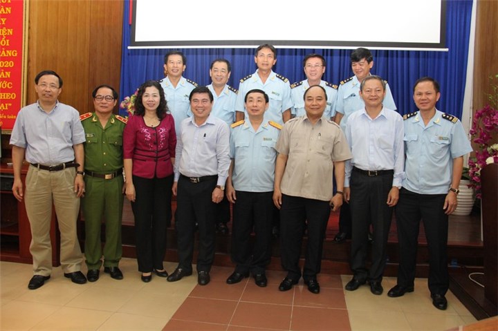 PM Nguyen Xuan Phuc (yang ketiga dari kanan) dan para kader cabang Direktorat Bea Cukai Bandara Tan Son Nhat.