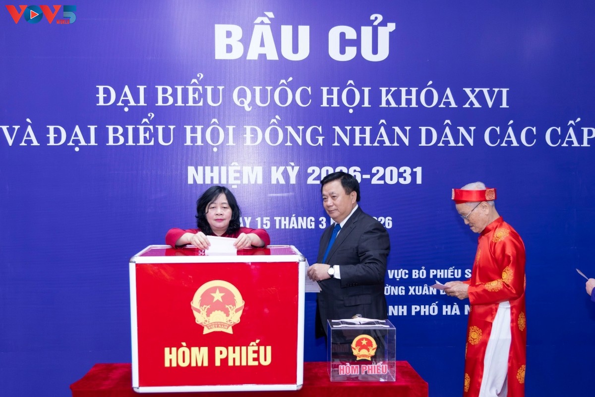 Di TPS nomor 7, kawasan korps diplomatik, Kecamatan Xuan Dinh, Kota Hanoi, Ketua Pengurus Besar Front Tanah Air Vietnam sekaligus Wakil Ketua Dewan Pemilihan Nasional, Bui Thi Minh Hoai, adalah orang pertama yang memberikan surat suaranya. Setelah itu, Wakil Perdana Menteri Pham Thi Thanh Tra bersama para pemilih di kawasan permukiman tersebut melaksanakan hak dan kewajiban sebagai warga negara.