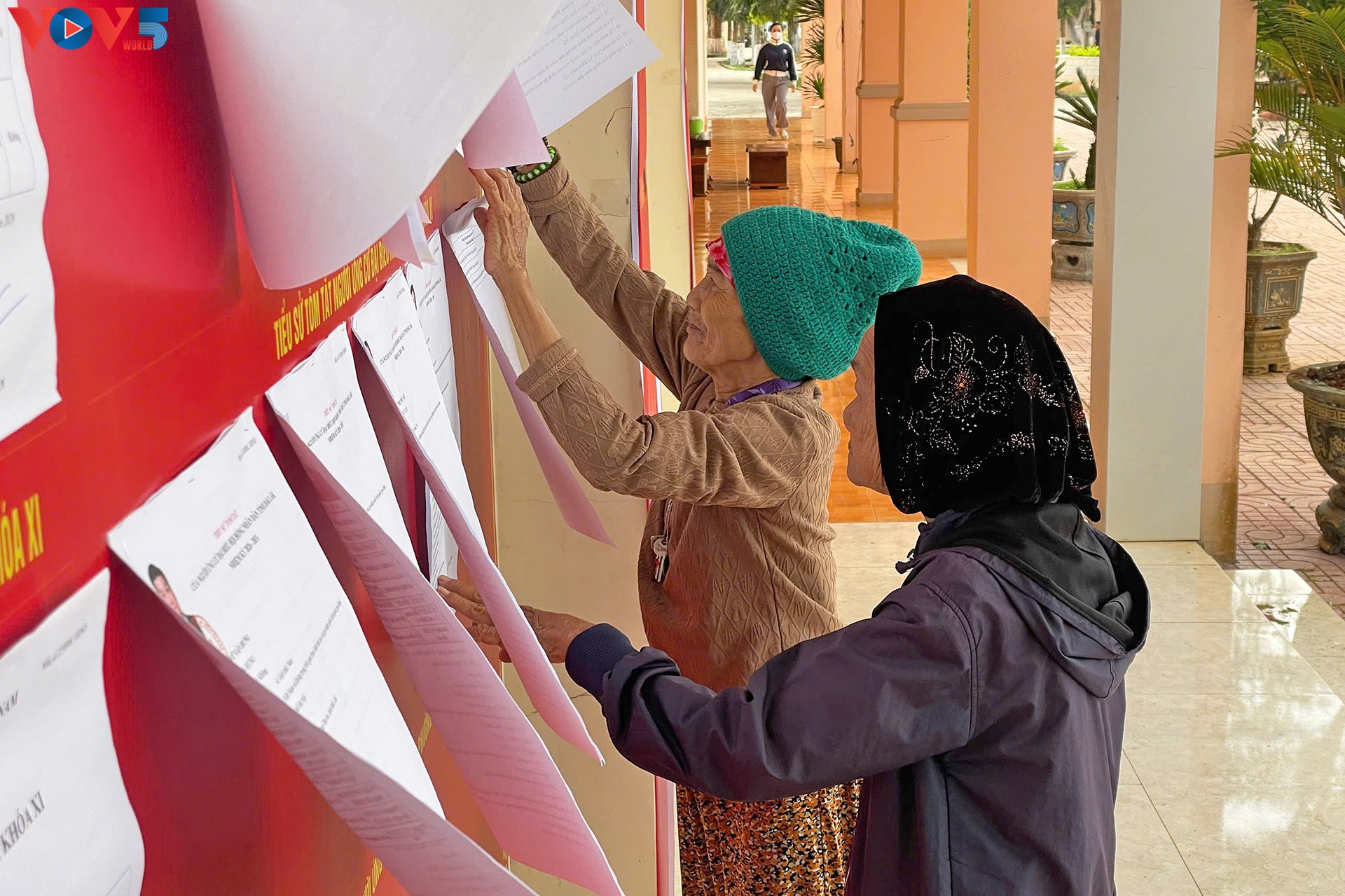 Warga Provinsi Dak Lak datang ke tempat pemungutan suara untuk meneliti para kandidat. Foto: VOV |